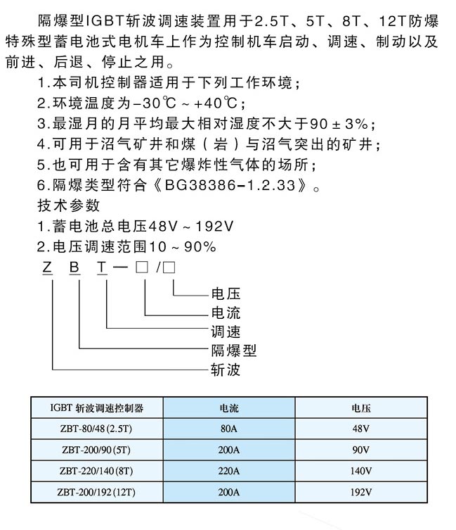 隔爆型蓄電池電機車專用IGBT司機控制器
